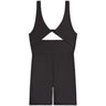 The Twist Cutout Bodysuit is detailed with a plunging neckline as well as a cutaway under the bust. It features an open scooped back, to fitting biker shorts.